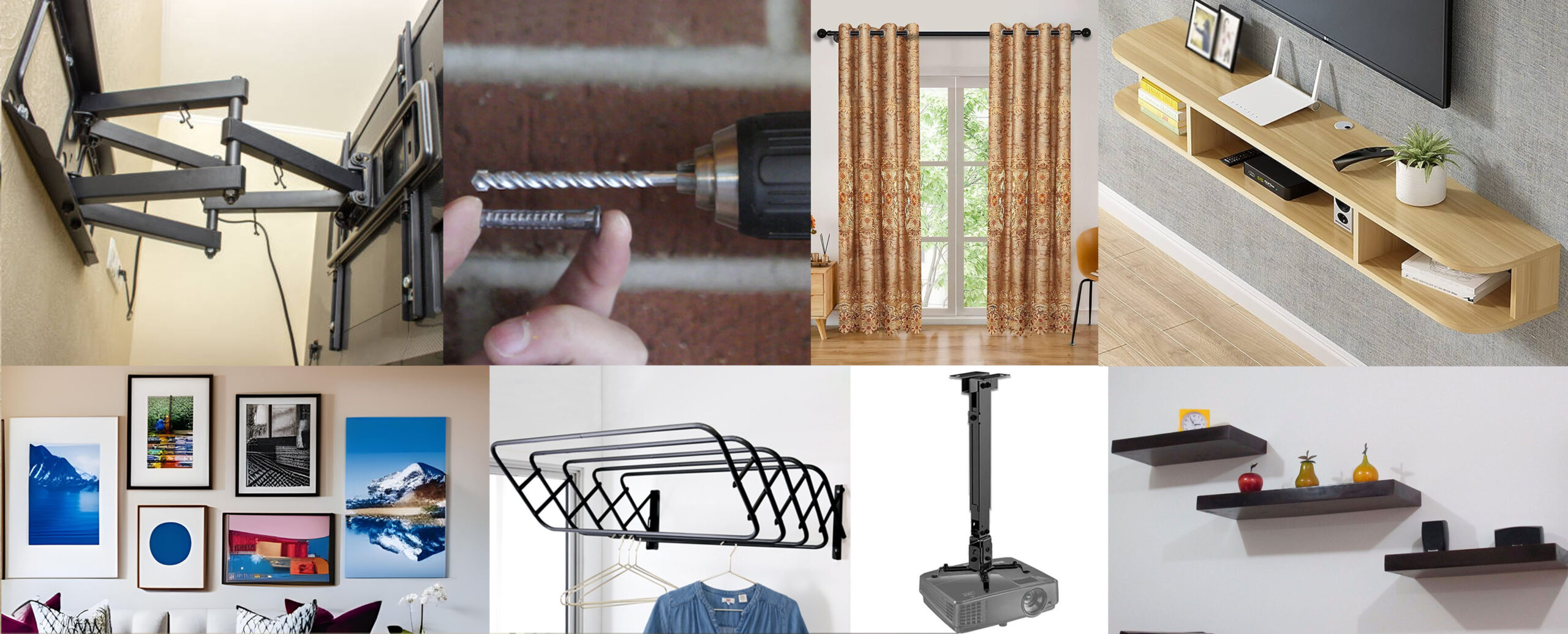 Suministro de soportes para TV y proyectores, además instalamos sus cortinas, cuadros, repisas, muebles pequeños y otros.